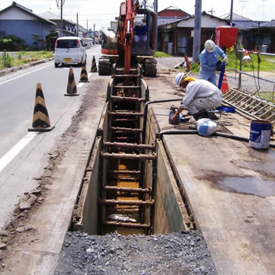 下水道管埋没工事とは下水道本管を土の中に埋めていく土木作業です。工事を始める前に周囲の環境を十分に調査することが欠かせません。また、場所や条件によって違う施工方法が用いられますが、開削工法と推進工法がメインになります。